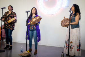 Founded in 1997, In Lak Ech is an L.A. based Xicana collective composed of multi-media artists, writers, mothers, teachers, and organizers uniting to tell Her-story through poetry, drumming and song. Their name is a Mayan concept meaning “you are my other me/tu eres mi otro yo.” The women of In Lak Ech perform and organize cultural celebrations, participate in conferences, and conduct workshops for diverse communities. They are the founding group of the women of color art and wellness organization Mujeres de Maíz. You can hear their poetry and music on their 2007 album “Mujeres Con Palabra” streaming on all platforms.