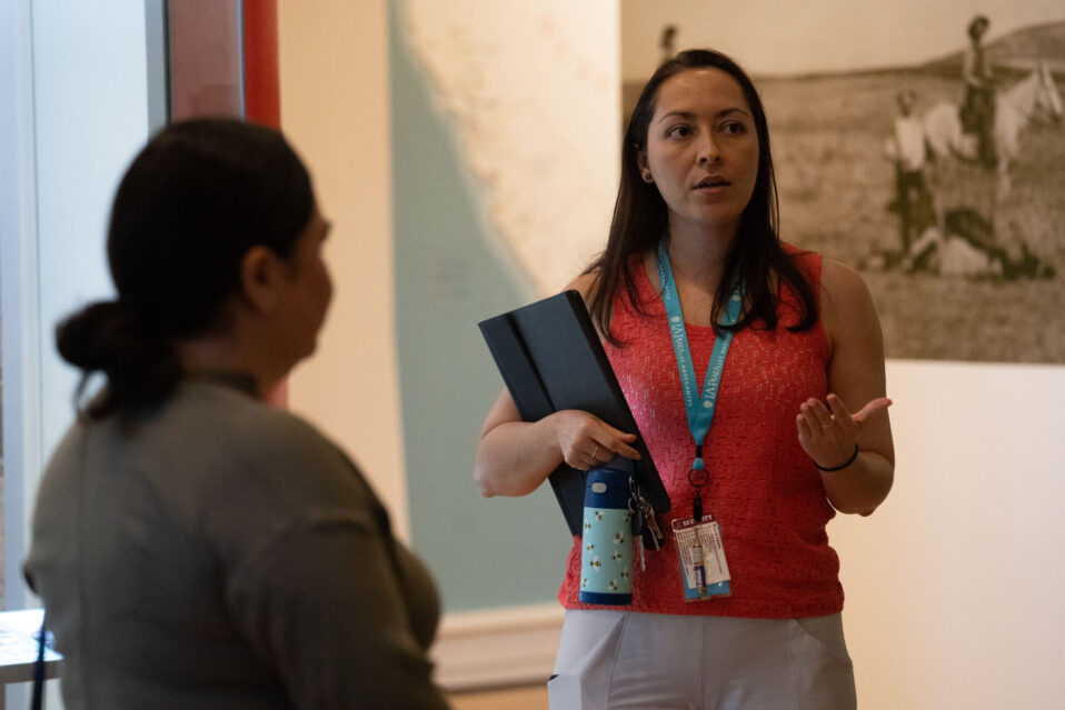 Les Navegantes, LA Plaza docents, connect our visitors with the Latina/o experience and the stories of Los Angeles from the past, present, and future. Les Navegantes lead tours of our core exhibition, LA Starts Here!, in English and Spanish, stimulating conversations that connect content to audiences of all backgrounds, ages, learning levels, and abilities.